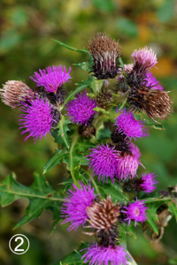 ⑤ 雌性花の総苞は筒形で紫色を帯び クモ毛がある。