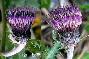 ③ ④ 茎葉は羽状中裂で 通常8対以上でオニアザミより多