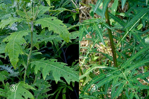 ③④中茎葉の形状は羽状浅裂(③)に近いものから羽状深裂